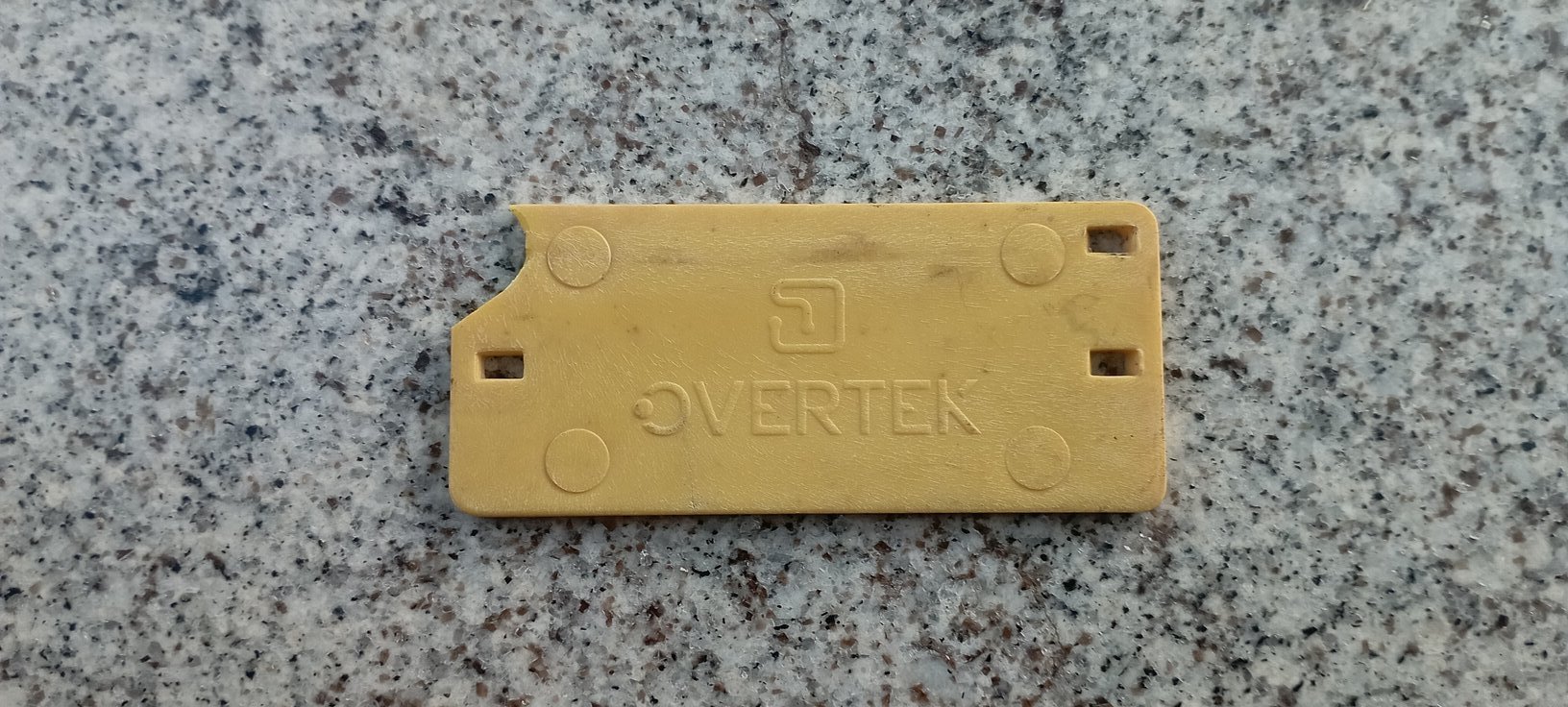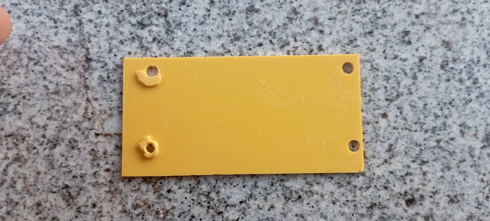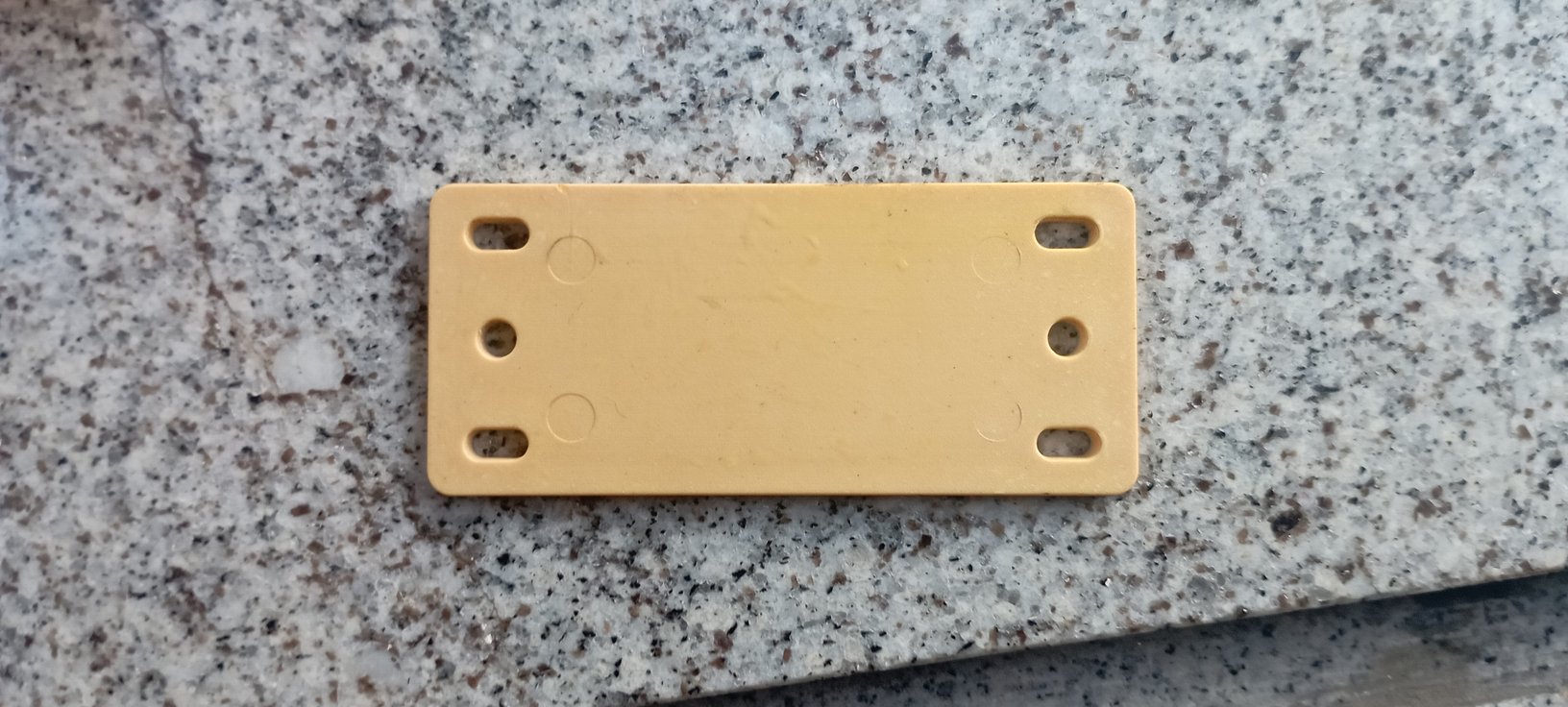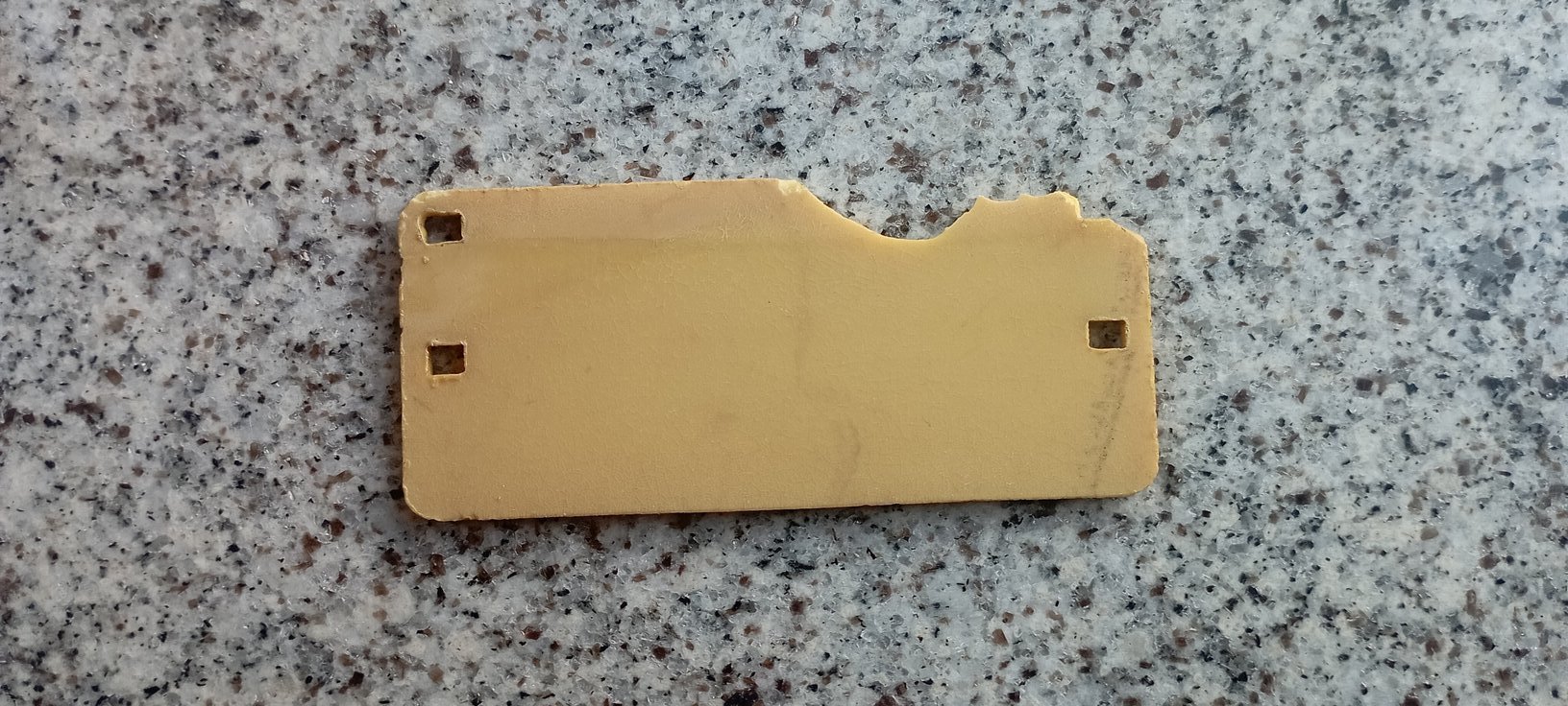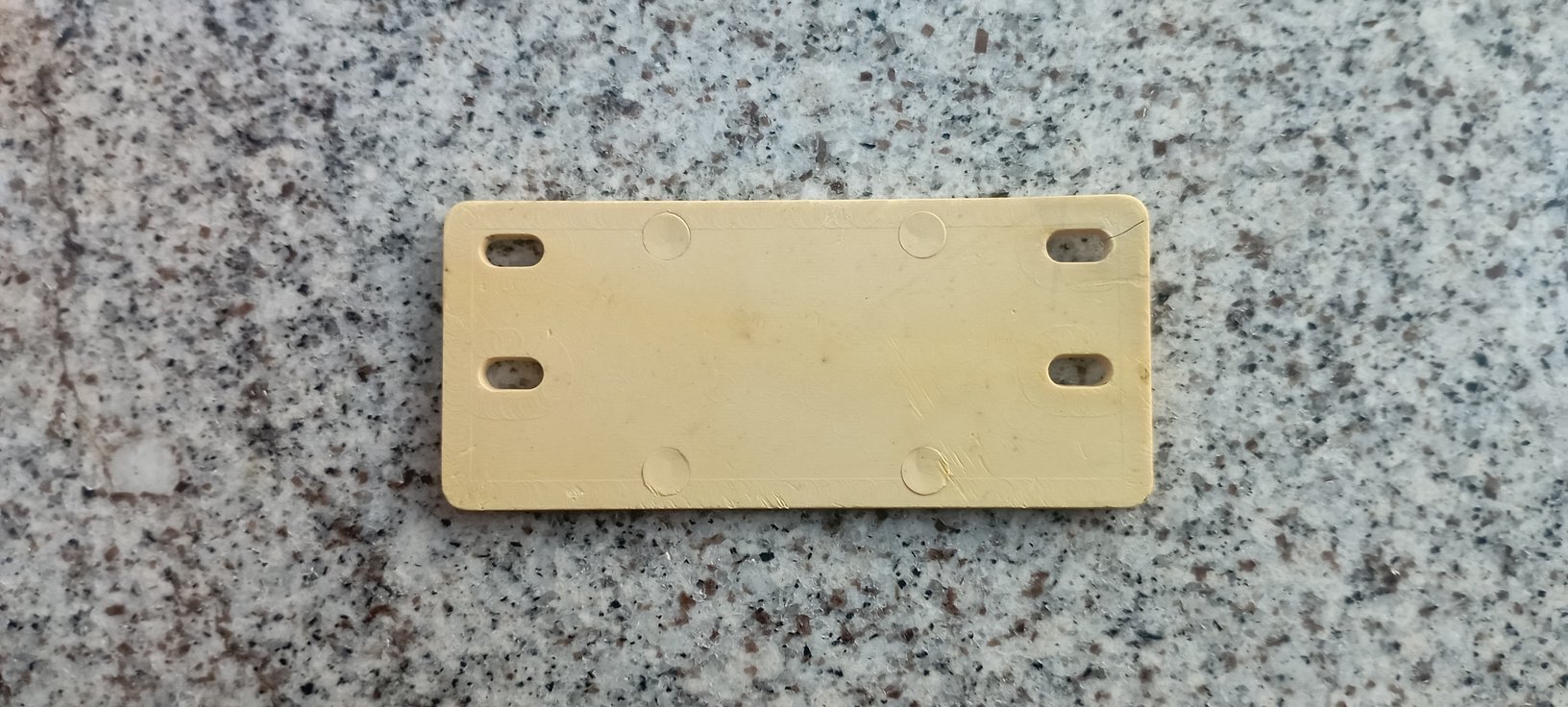 A plaqueta mostrada na Figura 4 tem uma textura específica, um áspero idêntico aos copos de plástico velhos da casa da minha avó, trazidos pelas minhas tias que trabalhavam como professoras em escolas públicas. As rachaduras fazem parecer que essa está prestes a se despedaçar, claramente dobrada pelo estresse dos fios que a amarravam ao cabo que ela identificava. Mas ela permanece inteira: suas feridas são apenas visuais, cicatrizes marcantes para quem vê de fora — mas aquele que é íntimo sabe que são nada em comparação à sua força.