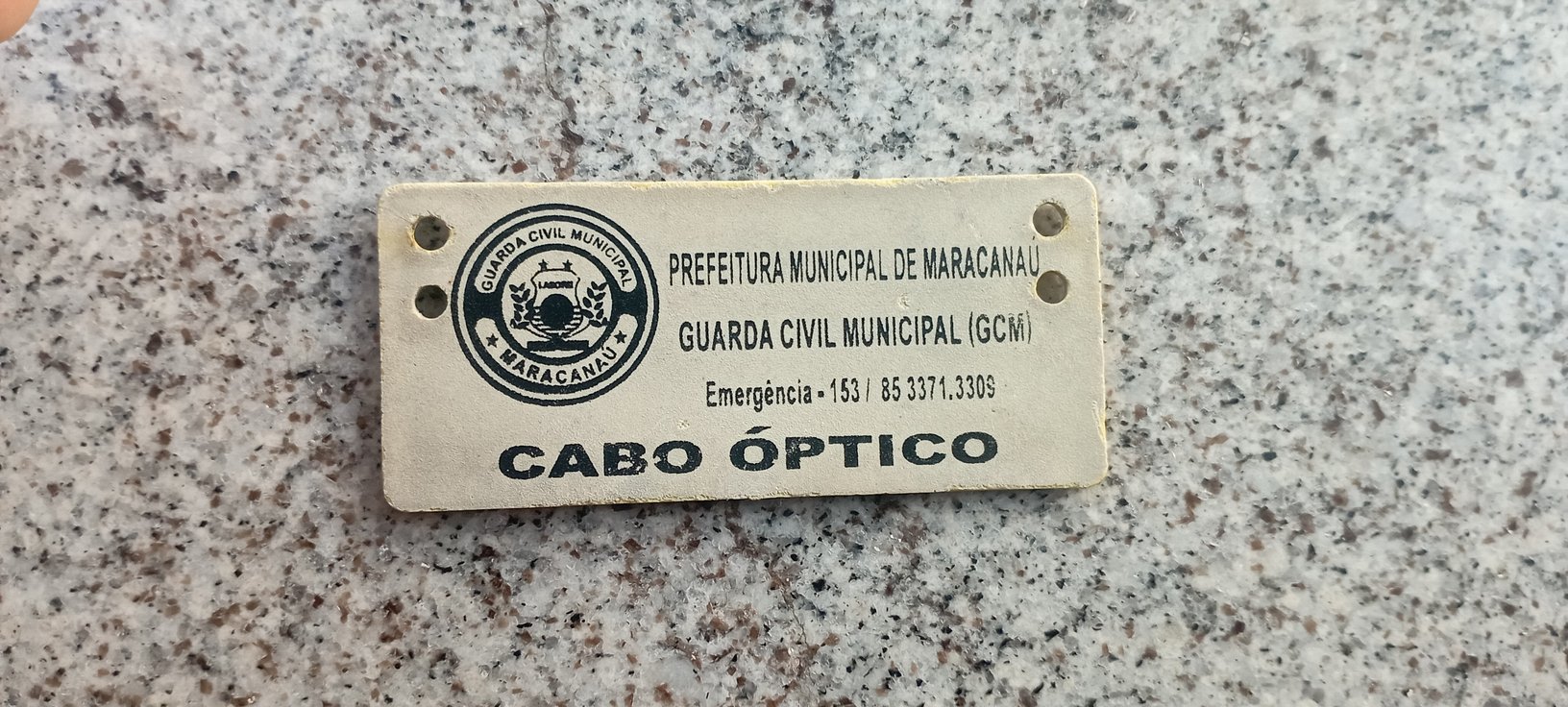 Eu não sabia que a prefeitura tinha seus próprios cabos ópticos (saber nada sobre fibra óptica ajuda). Faz bastante sentido! Ignorando a primeira palavra escrita na plaqueta, tem algo que grita “municipal” nessa placa. Sinto que me faltam palavras capazes de explicar: talvez o brasão enorme da guarda civil, a repetição de títulos, a sigla ao lado. Por favor?! O número do canal de emergência na plaqueta?! Seu material também cria uma estética singular.